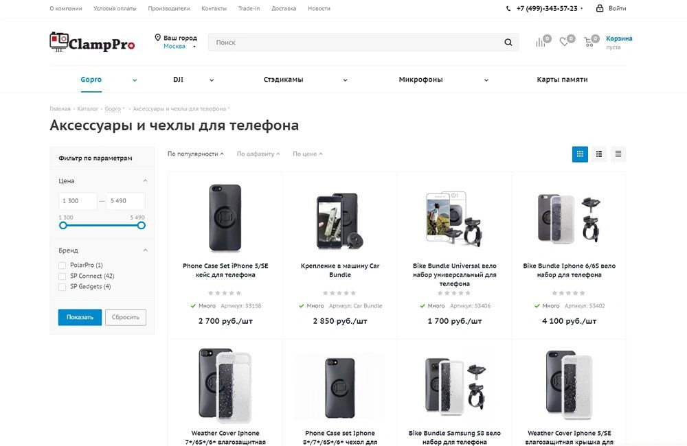 Интернет-магазин ClampPro предлагает широкий ассортимент камер GoPro и техники DJI, а также стедикамов, микрофонов и прочих аксессуаров для блогеров и экстремалов. Компания имела собственный сайт на OpenCart с ограниченным функционалом и слабыми показателями. Мы подобрали готовое решение Аспро и выполнили переезд на Битрикс. Подключили и настроили мультирегиональность на крупные города миллионники, всего 20 поддоменов. Автоматически наполнили сайт товарами с помощью парсинга cайтов конкурентов. Настроили Real-Time обмен с 1С. Настроили модули оплаты и доставки. Выполнили внутреннюю оптимизацию и работы по продвижению сайта. За полгода трафик посетителей из поиска увеличился в 15 раз.