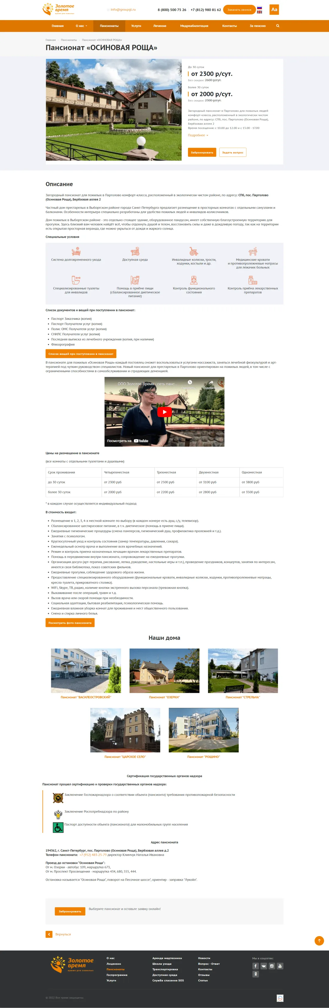 Разработали и выполнили верстку дополнительных блоков на страницах пансионатов и услуг